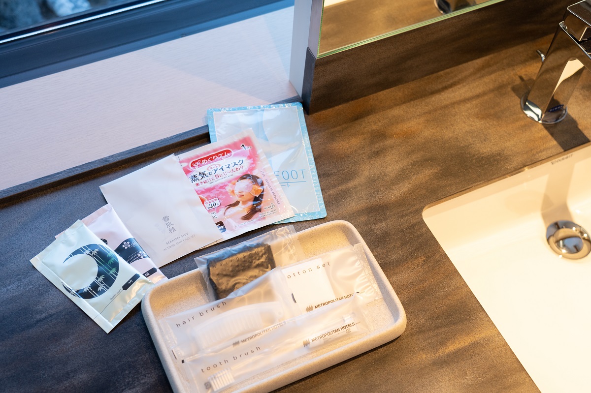 アメニティは一般的な物に加えて、基礎化粧品セット、アイマスク、フットケアシート、入浴剤が全室完備されているので、鎌倉の街歩きに疲れた身体には嬉しいですね。プレミアムコーナールームには、金箔入り化粧品「KINKA」が用意されています。