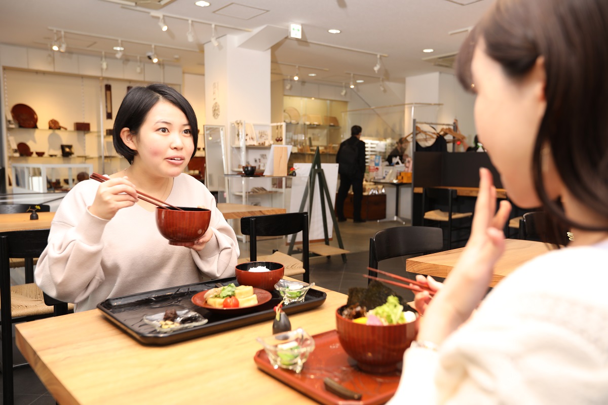 ホテルから徒歩1分の鎌倉彫会館では、800年以上の歴史がある鎌倉彫の器を使用したカフェで飲食ができます。