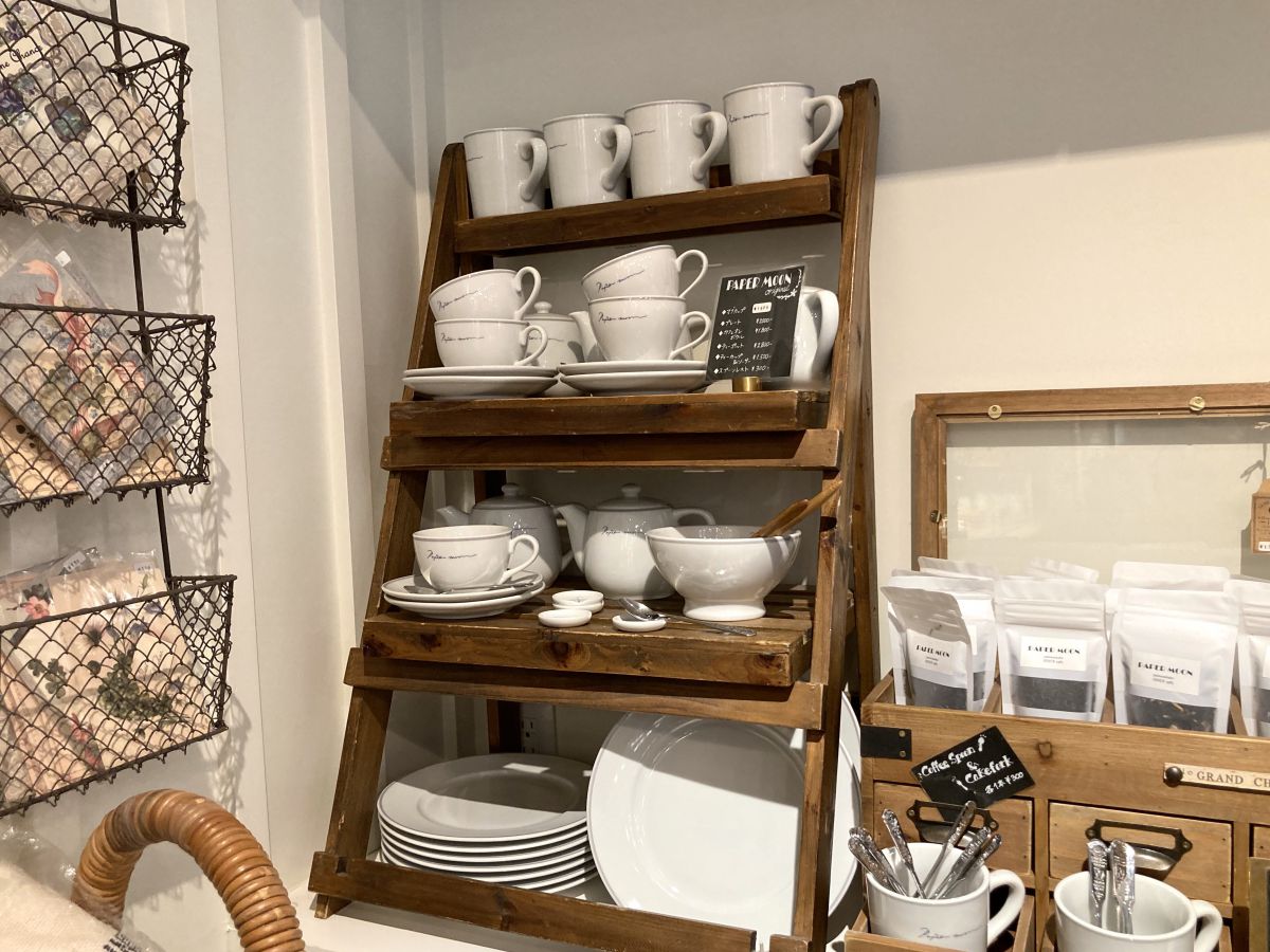 カフェスペースだけではなく、店内の雑貨コーナも要チェック。お店で使用されているロゴ入りのカップやポットは、シンプルながらまるっとしたフォルムがとってもキュート!