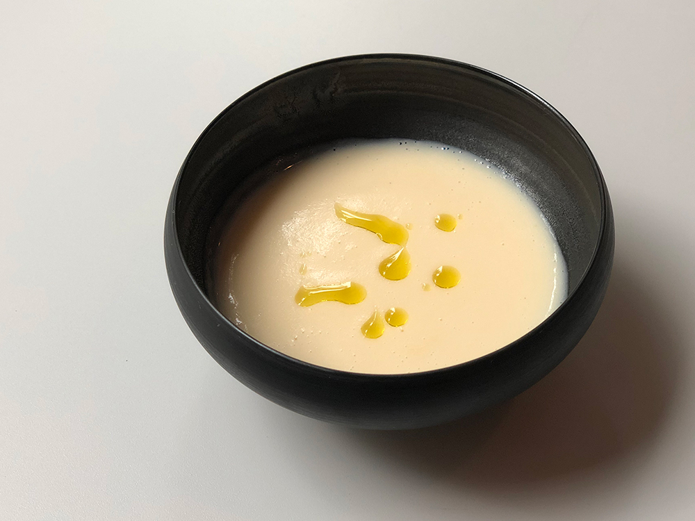 一品目は、新玉ねぎのスープ。バター、水、新玉ねぎを加熱し、仕上げにクリームで伸ばすだけという洗練されたシンプルなレシピで作られているんだそう。だからこその、新玉ねぎの甘みとバターの香りがギュッと凝縮されたような濃厚でやさしい味わいが、体にじわんりと染み渡ります。