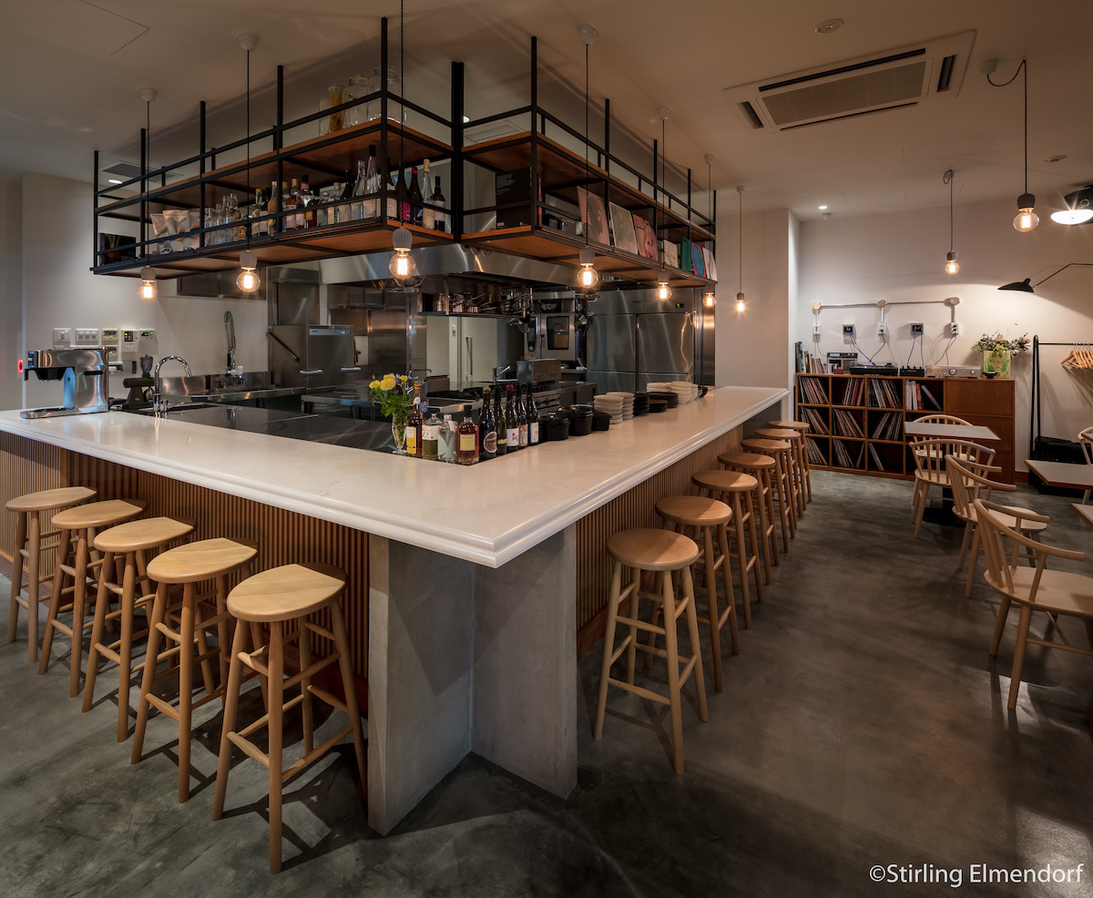 オープンキッチンのライブ感とレコードのレトロな音が魅力