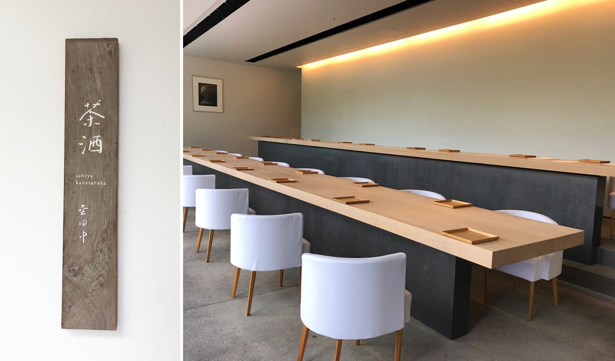 料亭はお酒を肴に会席料理を楽しむ場所ですが、ここはお酒は抜きでお茶をしながらゆっくり過ごしてもらう場所。「酒」という字と、1本横線を除いた “お洒落”の「洒」という字をかけて、“洒脱(しゃだつ)にお茶を楽しんでほしい”という思いから「茶洒 金田中」という名前がつけられたんだとか。