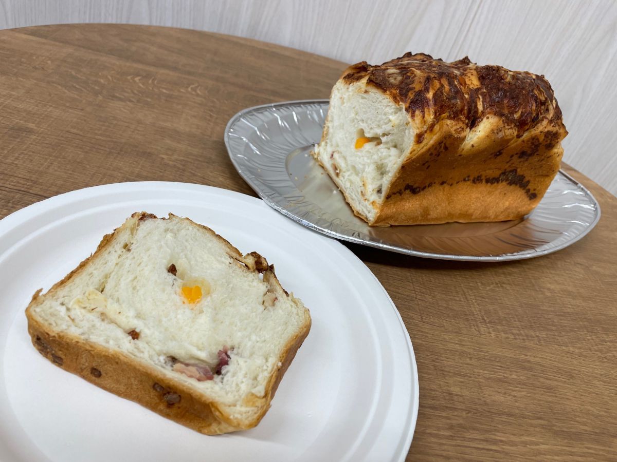 しっとりもっちりした食感で、少し甘みを感じる!しかも噛めば噛むほど小麦の風味とチーズとベーコンの味が混ざり合い、口の中で旨味が爆発します。じっくり蒸し焼き上げて作っていることがわかる美味しさですよ。