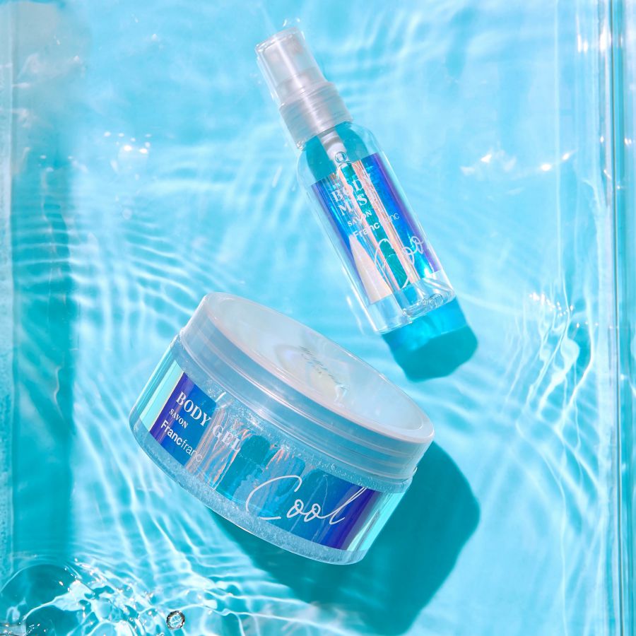 ボディケアアイテムのおすすめは、「クールボディミスト」(上)と「クールボディジェル」(下)。