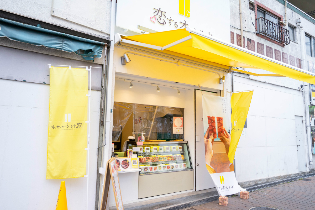 「恋するオープンサンド」があるのは、JR「三ノ宮駅」や阪急・阪神「神戸三宮駅」と「元町駅」をつなぐ約400mの高架下商店街「ピアザkobe」の一角。鮮やかな黄色のオーニングが目印です。オープン日は5月1日の“こ(5)” “い(1)”の日。なんともラブリー!