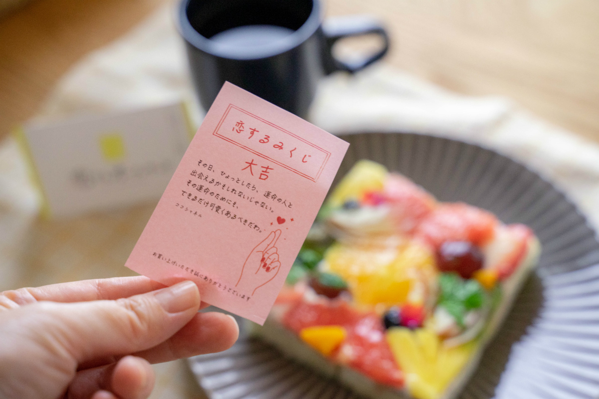 両想いのパッケージにはおみくじが封入され、恋占いを楽しめるのもうれしいポイント。今回はなんと「大吉」でした!