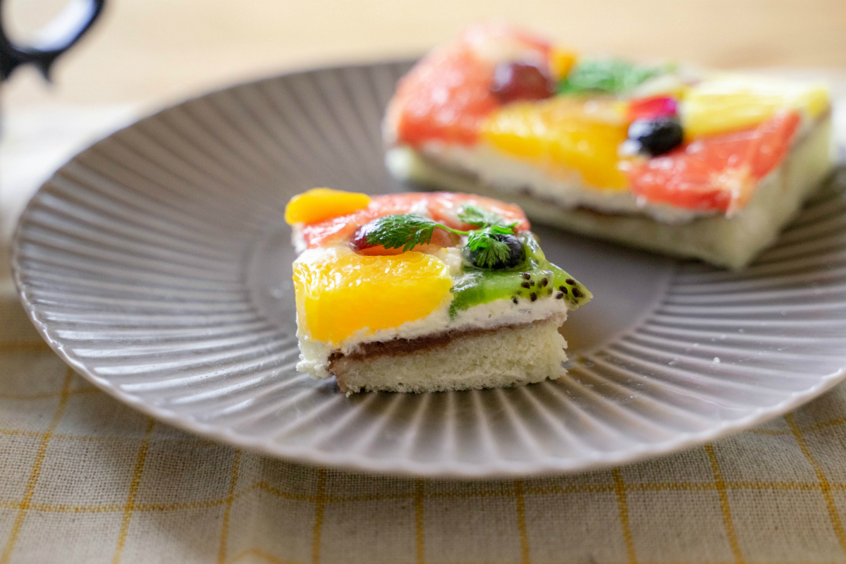 ふたつのサンドイッチをくっつけると、フルーツで描かれた図柄がぴたりとフィット。食べてしまうのがもったいないくらいです!