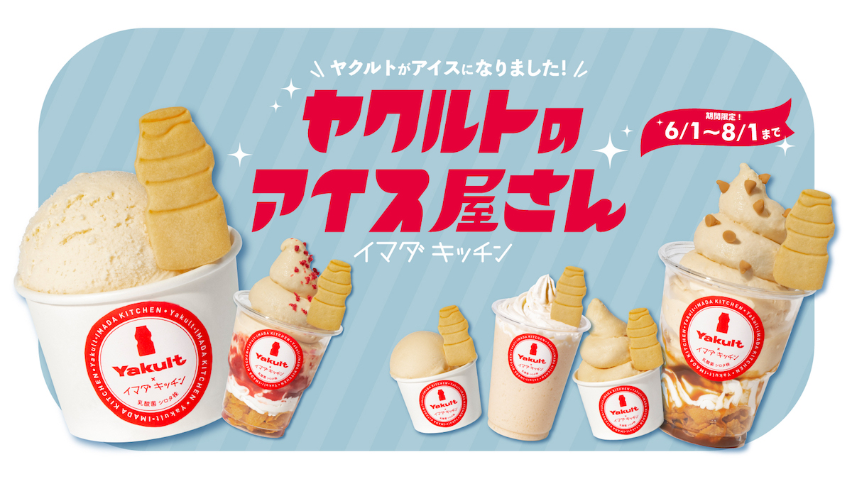 今回で第9弾目となる「IMADA KITCHEN」プロデュース商品は、国民的飲料「ヤクルト」を使用したいまだかつてない「アイスクリーム×ヤクルト」に決定!これからの暑い夏にぴったりなメニューは、思わず写真を撮りたくなるかわいらしいビジュアルも魅力です。