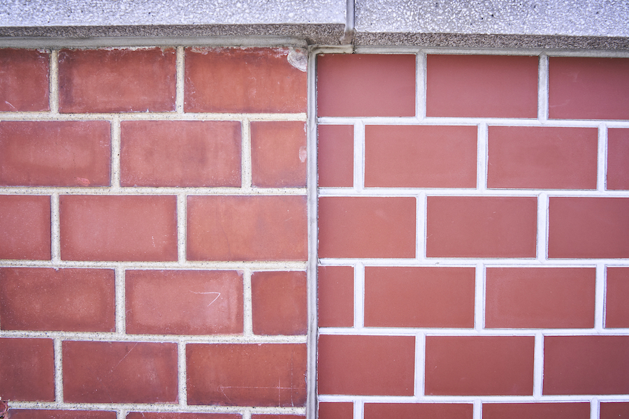 化粧レンガの隙間を埋める目地は、創建時と同じ断面が半円形の「覆輪目地(ふくりんめじ)」が施されています。現在、一般的には平目目地が採用されているため、施工にあたりまずは覆輪目地の技術を習得することから始まったといいます。
