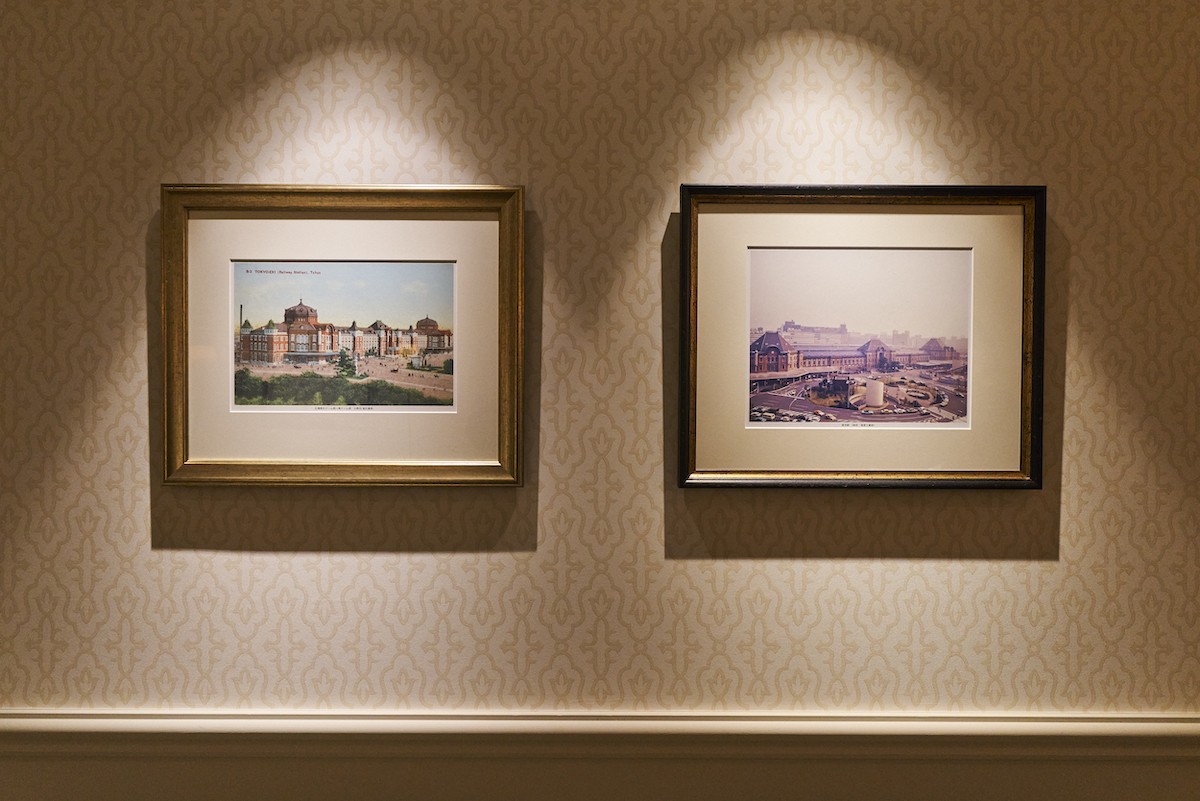 全長335mの駅舎という構造を生かした客室廊下は、真っ直ぐ長くて印象的。人気のフォトスポットになっています。壁には東京駅や鉄道、ホテルに関する写真、絵画、図面が100点以上飾られ、まるで歴史ギャラリーのよう。それぞれの写真や絵画にはQRコードがついていて、専用アプリがインストールされたiPadで解説を読むことができます(専用の宿泊プランで利用可)。