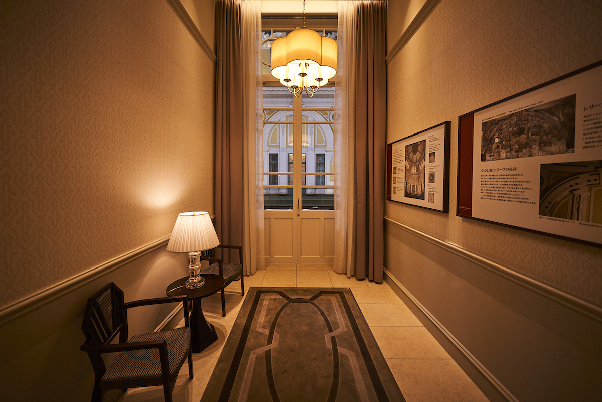 ホテル最大の見どころは、南北のドームレリーフ。3階の宿泊ゲスト専用スペースには、ドームレリーフを見られる「アーカイブバルコニー」が3ヵ所あります。この距離の近さは「東京ステーションホテル」に泊まる特典ですね!