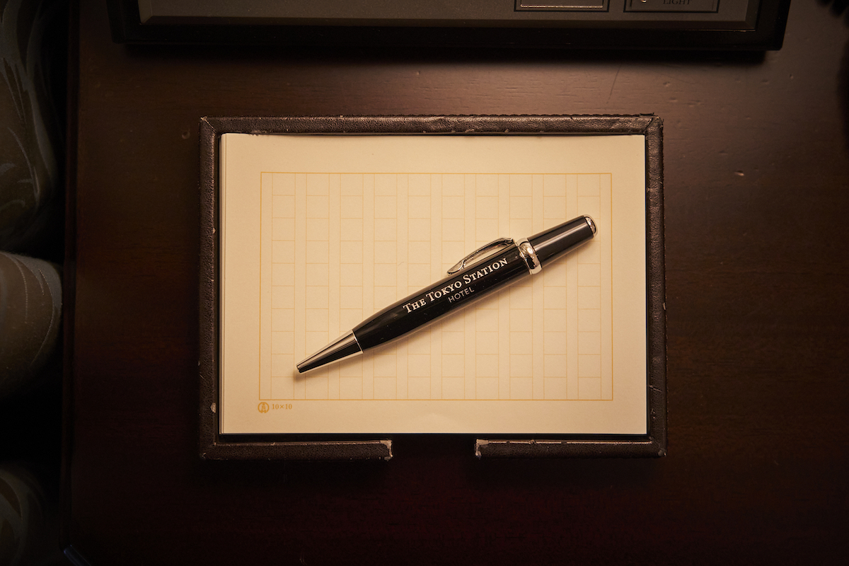 デスクの上には原稿用紙モチーフのメモ帳が置かれています。これは、リノベーション後のホテル再開業にあたり「ストーリーを形にしよう」と作られたもののひとつで、文豪に愛されたホテルという歴史から生まれました。