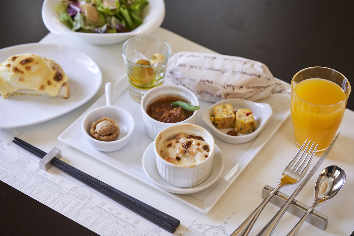 和朝食ステーションには江戸や東京をテーマにした料理もあり、取材時のメニューは深川めし(写真左下)でした。このようにユニークな内容のビュッフェはとても人気が高く、朝食を目的に宿泊するゲストもいるほど。世界最大の旅行プラットフォーム「トリップアドバイザー」の「国内ホテル朝食ベスト20」では、関東で唯一ランクインしているんですよ。