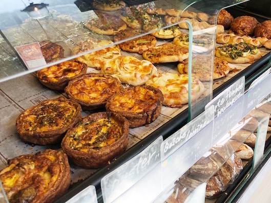 旅行中なら、ホテルの客室でパンディナーという方法も。キッシュやフォカッチャなど、すぐに食べられる惣菜系のパンも充実しており、こちらもレストラン顔負けのおいしさです。