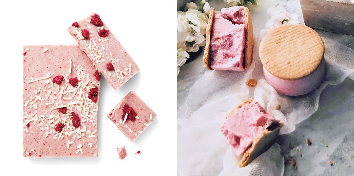 8月に届くのはオーストリア「コールリバーファーム」のベリーココナツチョコを使ったアイスサンド。ラズベリー入りのミルキーなホワイトチョコレートのアイスに、甘酸っぱいフリーズドライのラズベリーローストしたココナッツをしのばせた食材のマリアージュが楽しいアイスサンドです。
