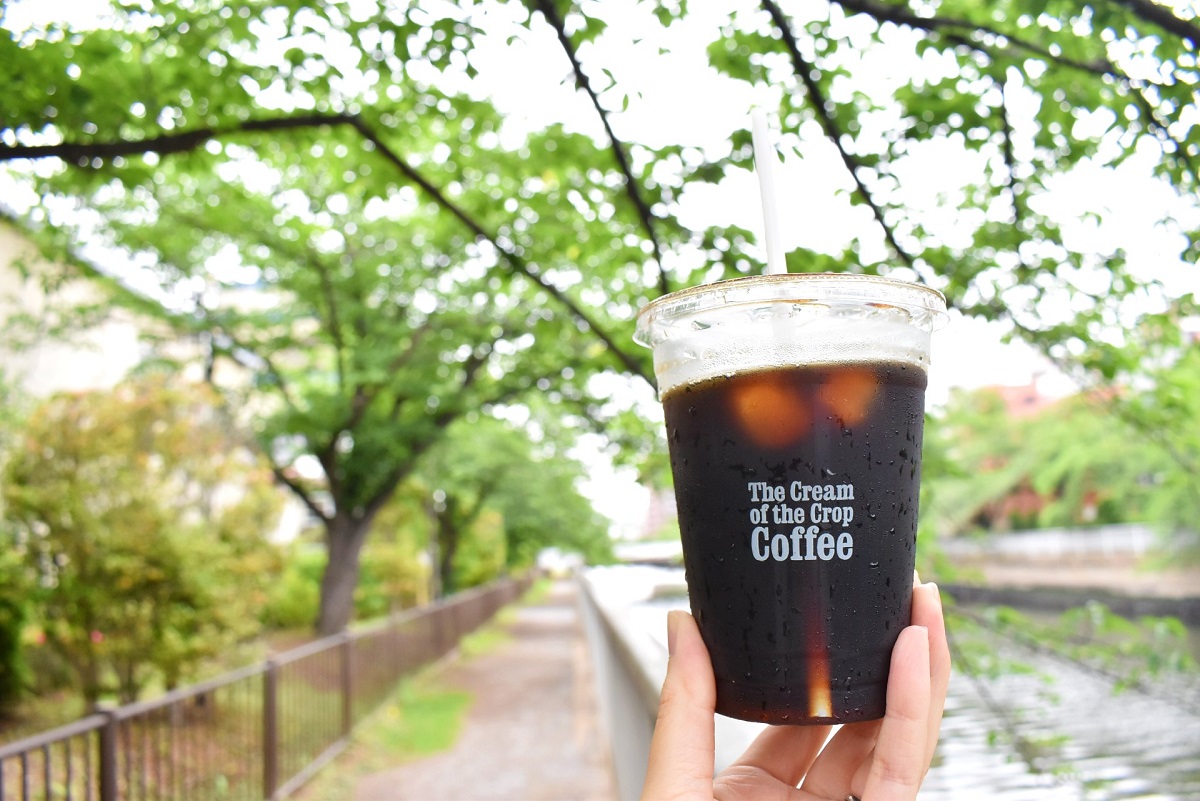 フォトジェニックな写真を撮ったあとは、ロースタリーの裏側にある川沿いの遊歩道を散歩するのもおすすめです。アイスコーヒーは「オリジナルブレンド」450円~(写真)や、「カフェオレ」470円~などもあり、これからの季節にぴったり。