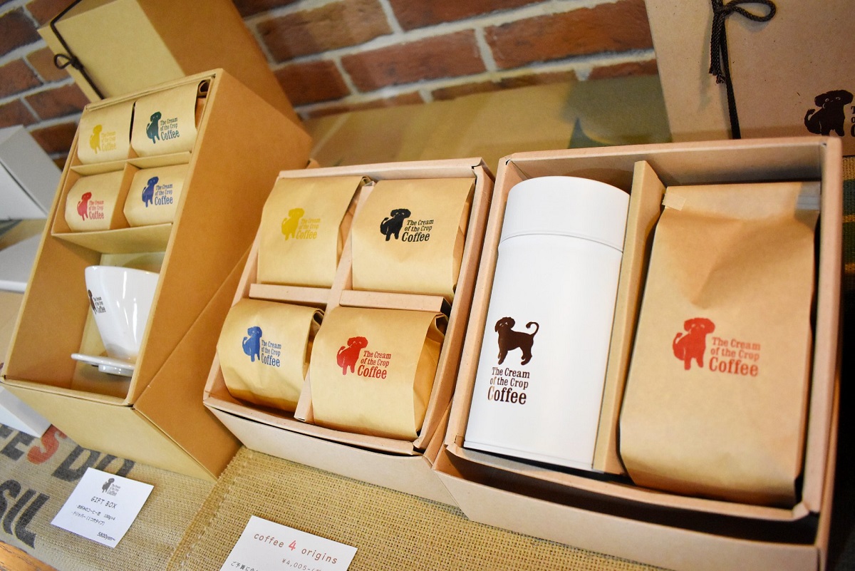 もちろんロースタリーで焙煎したコーヒー豆100g850円~の購入もOK。ギフトボックスもいろいろあるので、コーヒー好きの家族や友人へプレゼントしてみてはいかがでしょうか?