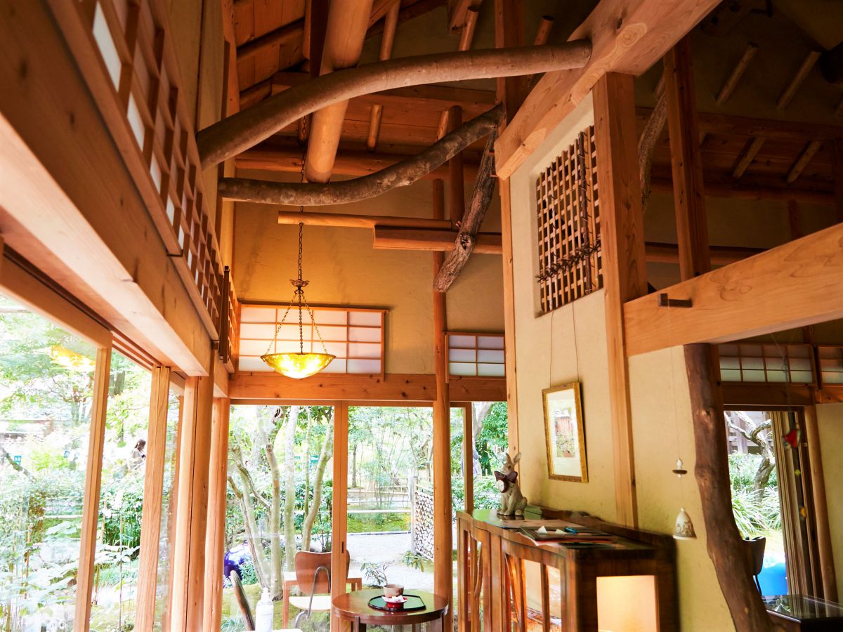 室内は和の趣たっぷり。壁一面ガラス窓になっているので、席に座りながらでもお庭を見ることができます。