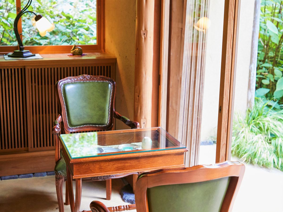 和のしつらえの中にさらりと置かれたアールヌーボーランプやアンティーク家具が、優雅で特別なひとときを一層盛り上げてくれます。席によって使われている家具は異なるので、どの席になるかはその日のお楽しみで!