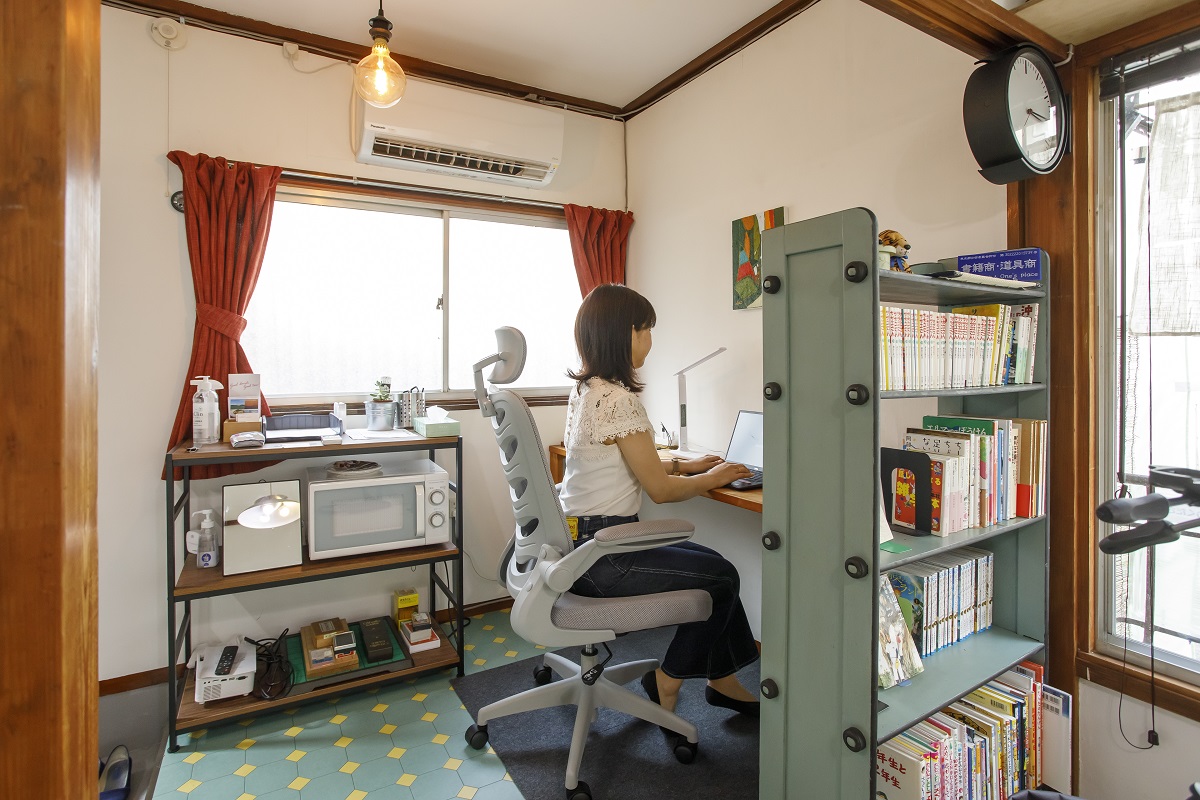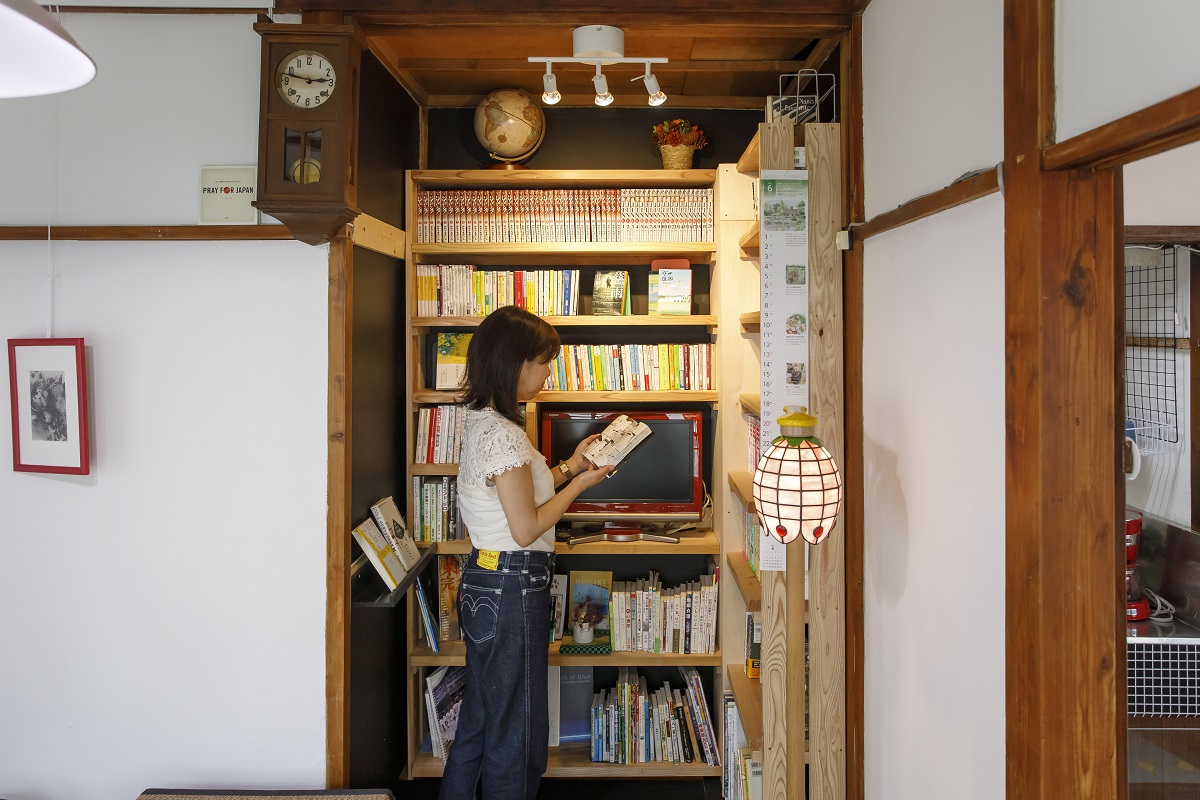 押し入れ部分は本棚に改装され、気分転換に読めるマンガや文庫本などが約500冊も揃っています。静かな空間で、読書にも集中できますね。