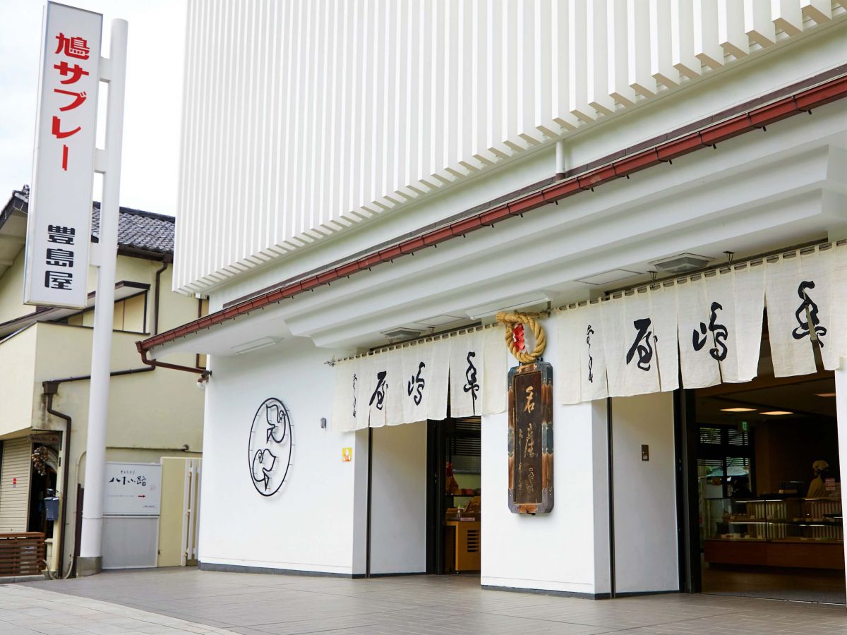 「鳩小路」を抜けると、すぐ目の前に「豊島屋菓寮 八十小路」ののれんが!