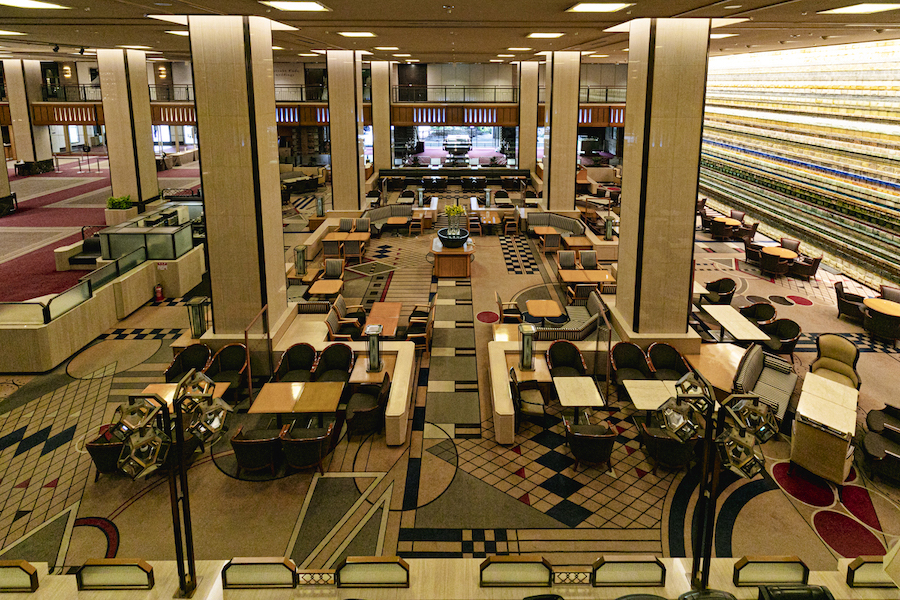 メインロビーのラウンジ「The Rendez-Vous Loungeランデブーラウンジ」も絶好のリフレッシュスポットです。中二階まで吹き抜けになった開放的で落ち着いた空間は、離れたくない居心地のよさ。