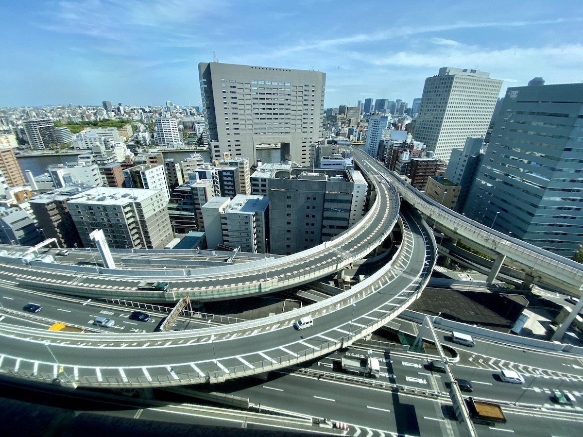 東京タワーの眺望もさることながら、眼下に望む首都高速道路の箱崎ジャンクションと隅田川ビューが密かに人気。これも東京ならではの景色です。