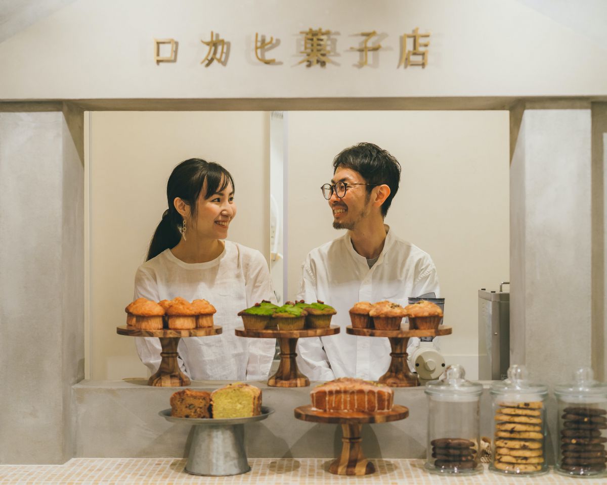 京都にある「古川町商店街」は、知恩院エリアまで南北に続く商店街です。そんな商店街に、「ロカヒ菓子店」がオープンしました。全国的に有名な自然派化粧品のお店で出会った三重野さん夫妻が立ち上げた、焼き菓子のお店です。