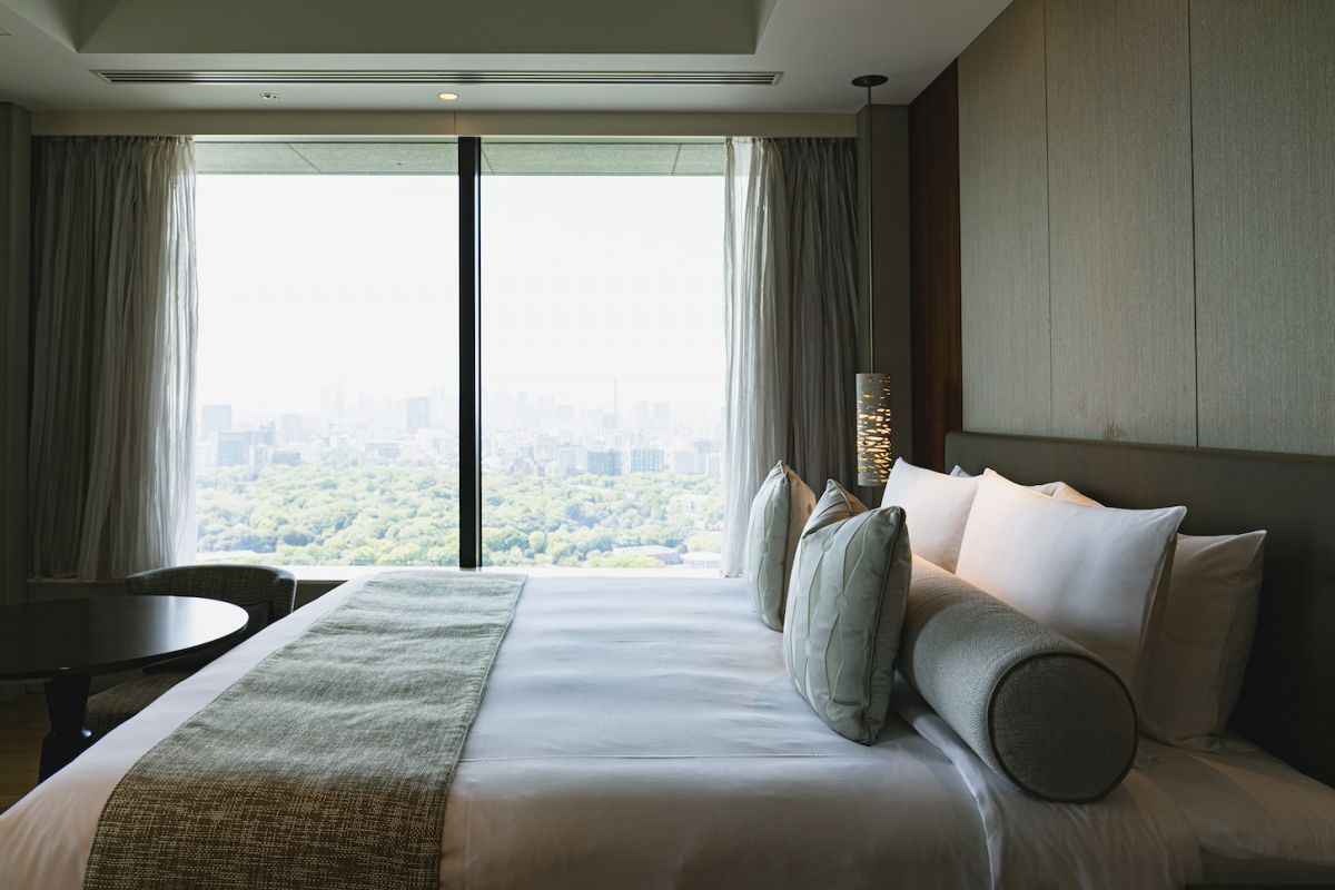 最上階は眺望も抜群。朝、目が覚めたら、緑に覆われた皇居と新宿の高層ビルが立ち並ぶ景色を眺められるなんて!1日のスタートにふさわしい東京ビューですね。