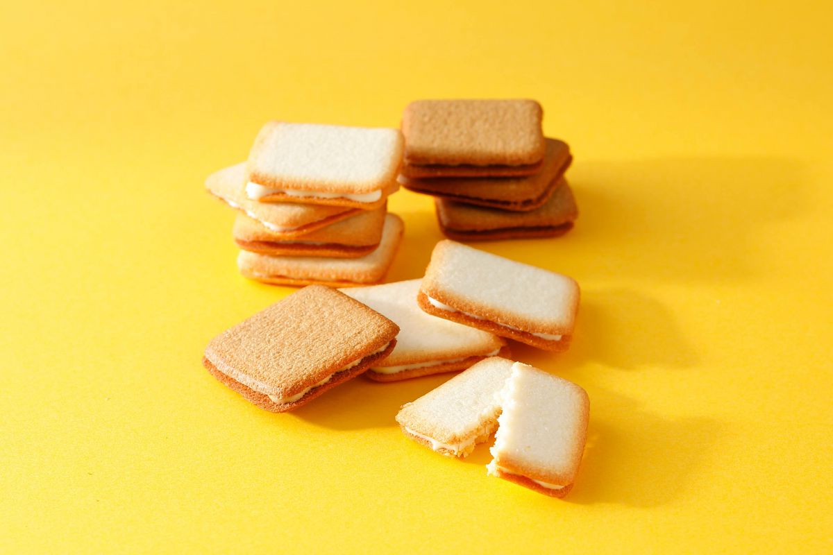 下段は、ブラン味。老若男女が好きなバニラのプレーンクッキーにコクのあるホワイトチョコレートをサンドしたものです。