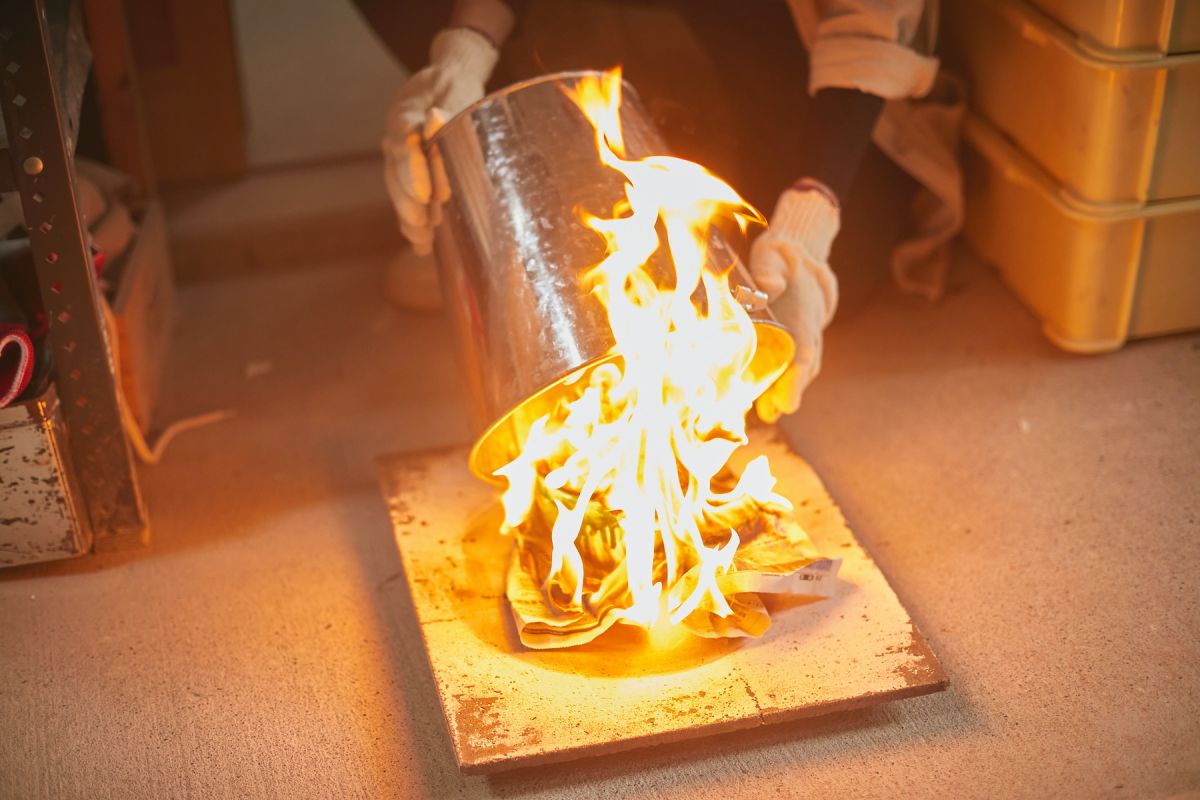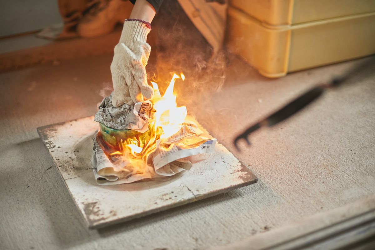 新聞紙の上に着地させるやいなや燃え上がる炎。