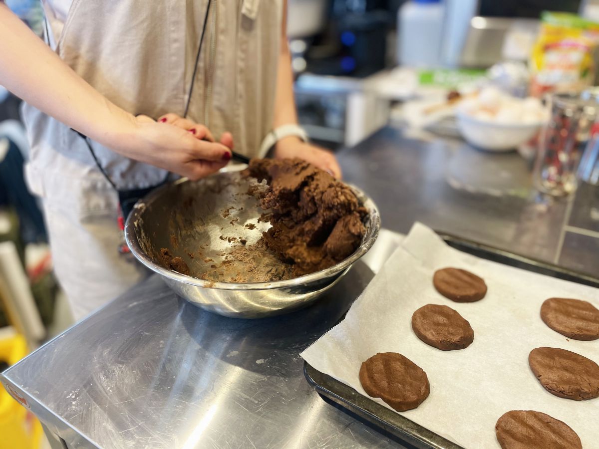 スイーツはオープン当初から大人気で、お店に並べるとあっという間に完売してしまうため、一日に何度も作っているのだそう。取材時もチョコクッキーを製作していました。