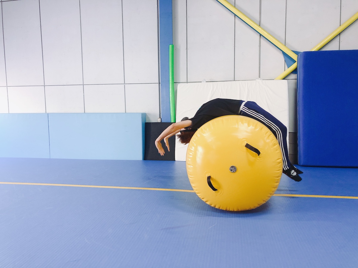 せっかくなのでマットの楽しみ方も少しご紹介。このように大きなポールでバク宙の練習ができたり、体操競技やチアリーティングの練習をしたり、自由に使っていいそうです。