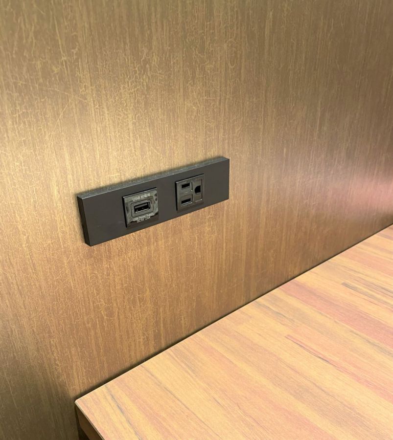 壁際の座席にはコンセントが完備されているのが、うれしい心遣い。