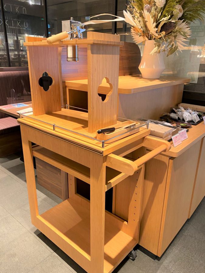 まず「生しぼりお濃い抹茶モンブラン」1650円を注文。運ばれてきたのはこちらの絞り機。
