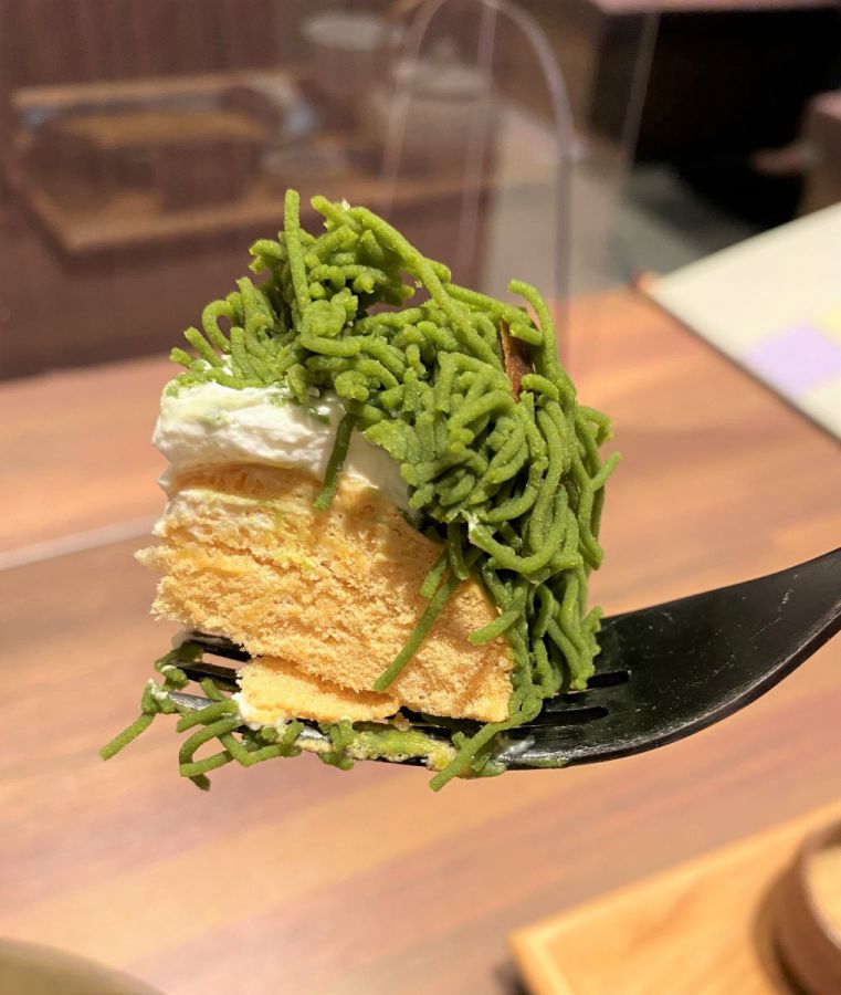 口に運ぶと、驚くほど濃厚な抹茶が感じられ、さらにサクサクのメレンゲがふわっと溶けていきます。これはおいしい…!こちらのメレンゲは16時間もかけて焼き上げているため、この軽い口溶けが実現できているのです。さらに生クリームは甘みをしっかり感じられるよう、あえて塩味を効かせているそう。