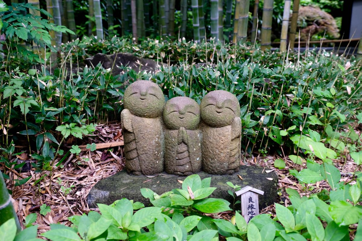 あじさい路を終え、上境内の竹林まで下りると、ここにも良縁地蔵の姿がありました。3カ所に設置された良縁地蔵に両手を合わせれば、きっとほほえみ返してくれるでしょう。