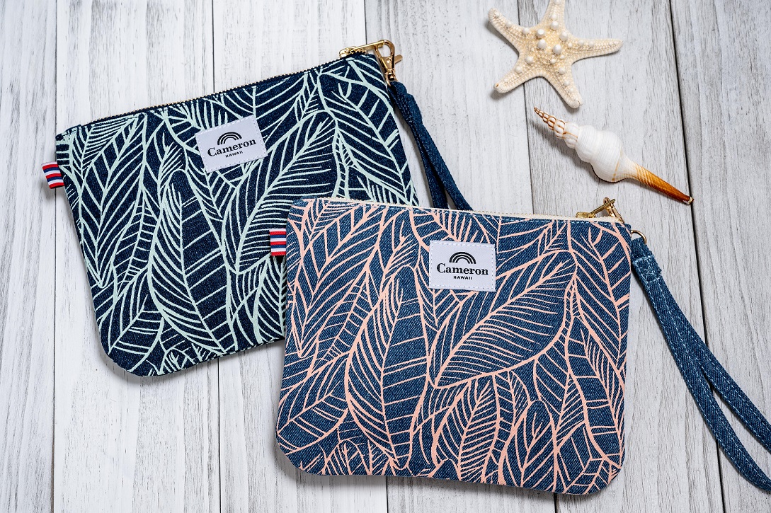 サイトでも人気なのが、ハワイらしいバナナリーフが大きくデザインされた、スタイリッシュな「クラッチバッグS バナナリーフ ミントグリーン/ピンク」(各$32.00)。Sサイズのほかにちょっと大きめのLサイズ($36.00)もあるので、用途に応じてサイズ違いで持ち歩いてもいいですね。バッグインバッグとして使えば、カバンのなかも整理できちゃいます!