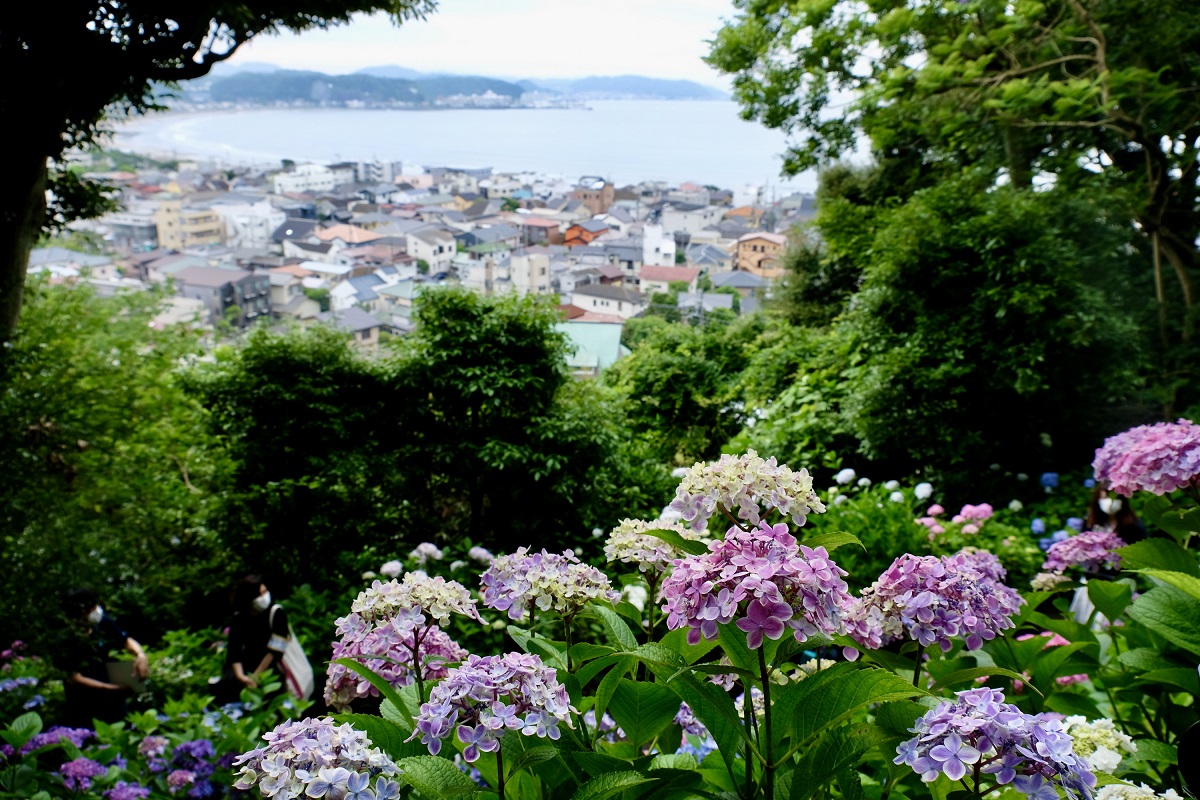 七里ヶ浜と、あじさいと。絶景を愛でる/鎌倉海浜公園(稲村ガ崎地区)