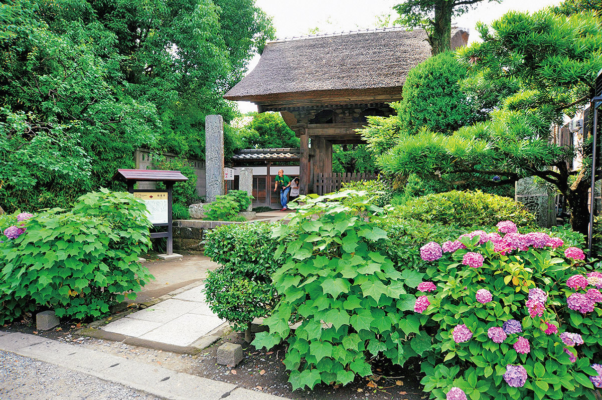 正元元年(1259)に創建された真言律宗の「極楽寺(ごくらくじ)」。開山は、貧者救済や病人の治療に尽くしたことで知られる忍性菩薩。山門の前には紫や青、濃いピンクなど色鮮やかなあじさいが植えられ、江ノ電からも目を楽しませてくれます。