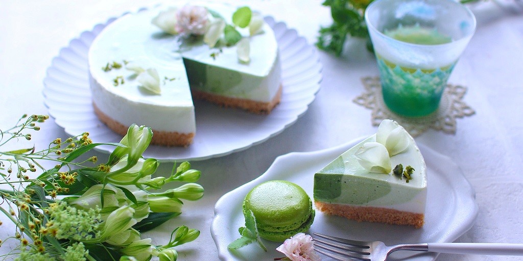 新緑の季節に。オーブン不要の抹茶のグラデーションレアチーズケーキレシピ