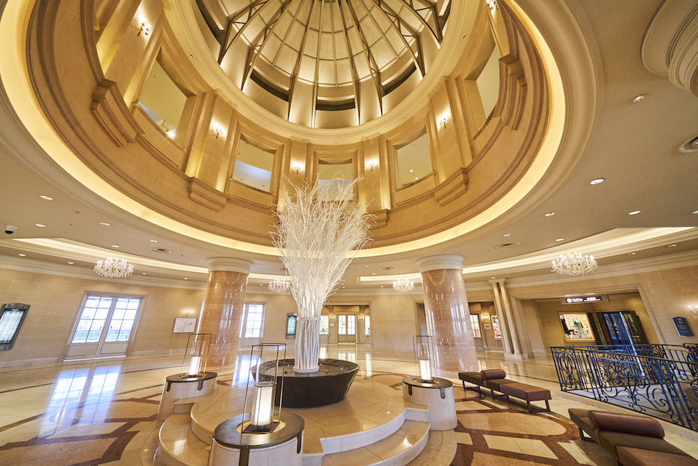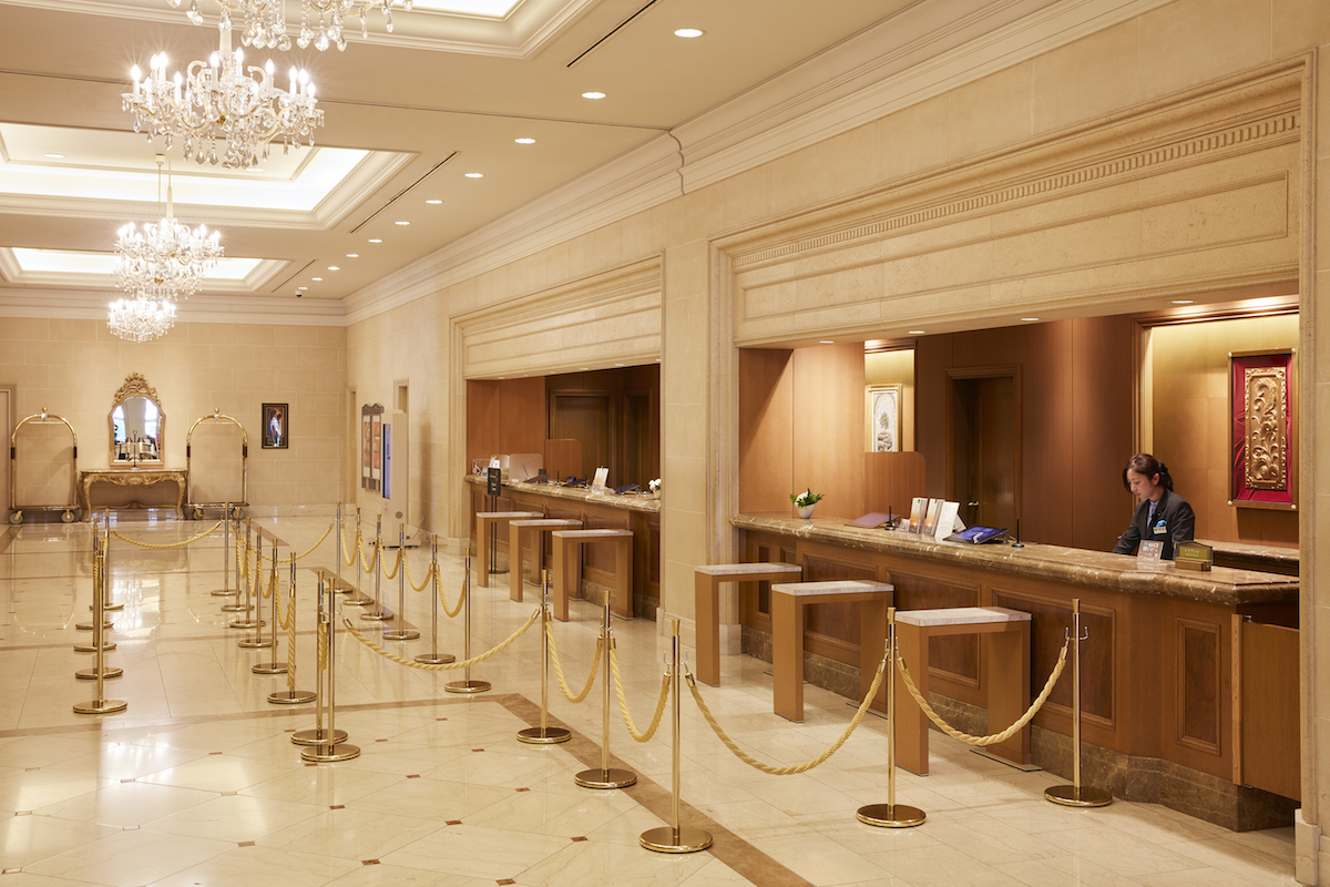 続いて、フロント・ロビーへ向かいましょう。こちらも天井が高くて、ため息がでる美しさ。ホテルの顔でもあるフロント・ロビーがこんなに広いのは、都内でもかなりレアです。