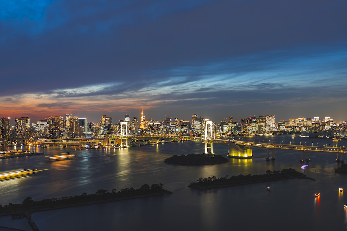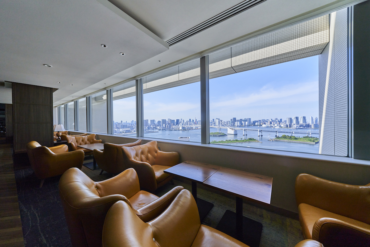 続いて、30階にあるバー「The Bar & Lounge」へ。ここからもレインボーブリッジがきれいに見えるのでおすすめです。ティータイムや食前酒タイム、バータイムなど、お好きな空の色を狙って訪れてみては?