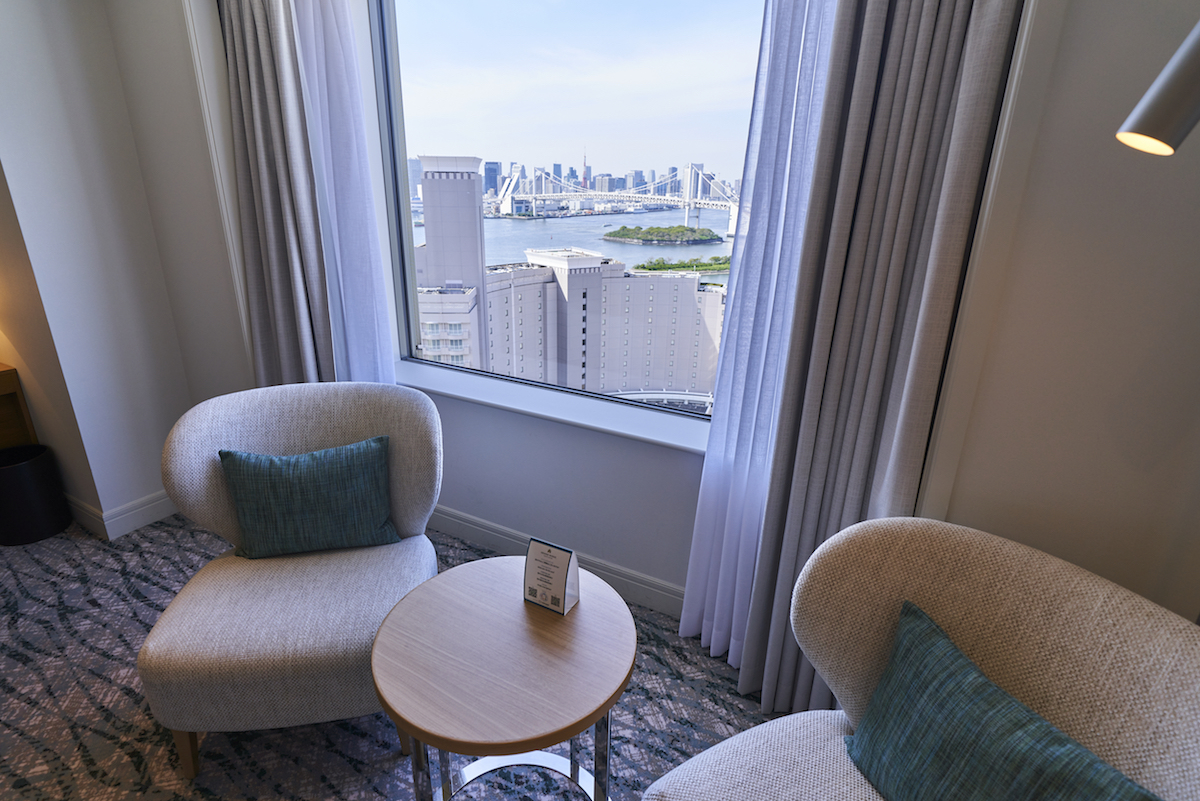 こちらのデラックスルームからは、レインボーブリッジが見えました!記念日ステイなどであれば、眺望確約の宿泊プランを利用するのもおすすめです。