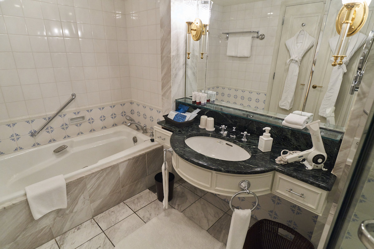 バスルームもチェックしてみましょう。「グランドニッコー東京 台場」は、全室バスタブ付き。アメニティにあるバスソルトを入れて、観光で疲れた体を癒やしてくださいね。