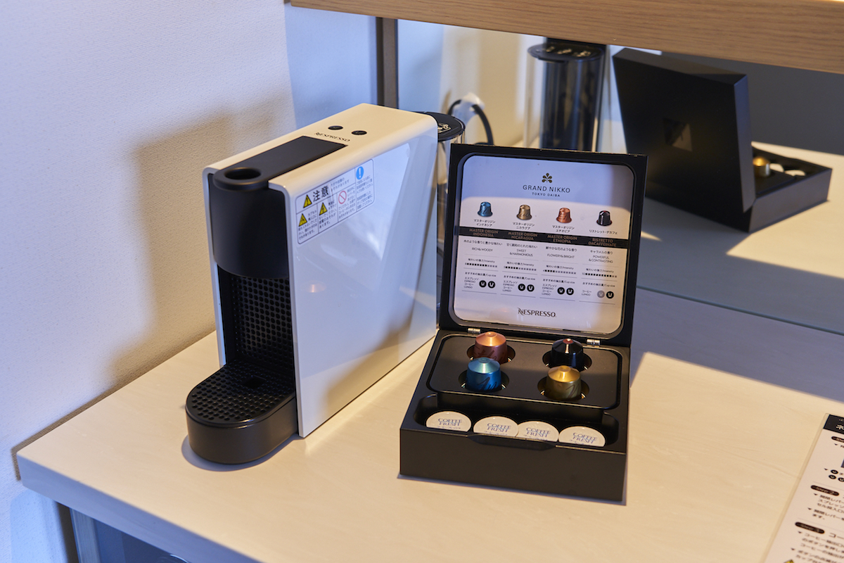 全客室に無料のコーヒーマシンや紅茶、緑茶の用意があるので、客室でゆったりティータイムも楽しめます。朝の静かなベイエリアを見ながら、夜景をひとり占めしながら、ほっとひと息いかがですか?