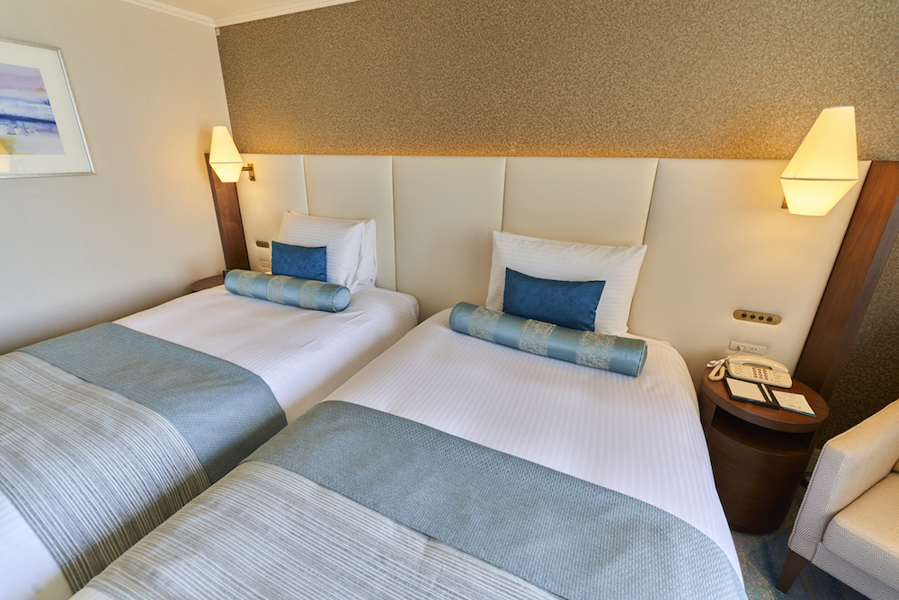 今回は、より仕事に集中できそうなブリーズスタイルのスーペリアルームにステイ。ベッドは、ツインとダブルがあります。もちろんどちらの場合でも、シングルユースOK!エグゼクティブフロアの客室のベッドには、アスリートなども愛用するエアウィーブのマットレスパッドを採用。仕事で疲れた体を癒やし、睡眠の質をぐんとあげてくれるはず。