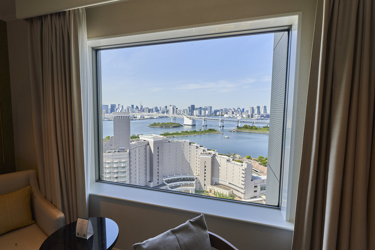 パソコンから目を上げれば、すぐ目の前にこの絶景が!これぞ「グランドニッコー東京 台場」でワーケーションする醍醐味ですよね。きれいなベイビューを眺めるだけで、仕事でパンパンになった頭がクリアになる気がします。