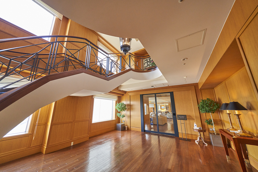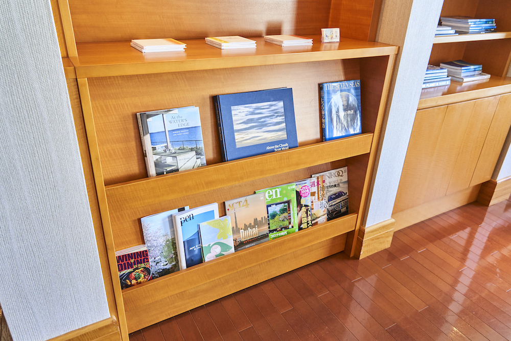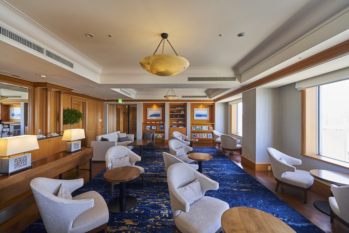 こちらのラウンジは名前の通り、ベイビューを楽しむためのラウンジ。まるでクルーズ船の中にでもいるような気分になる、ウッドと青を基調にしたインテリアがすてきです。