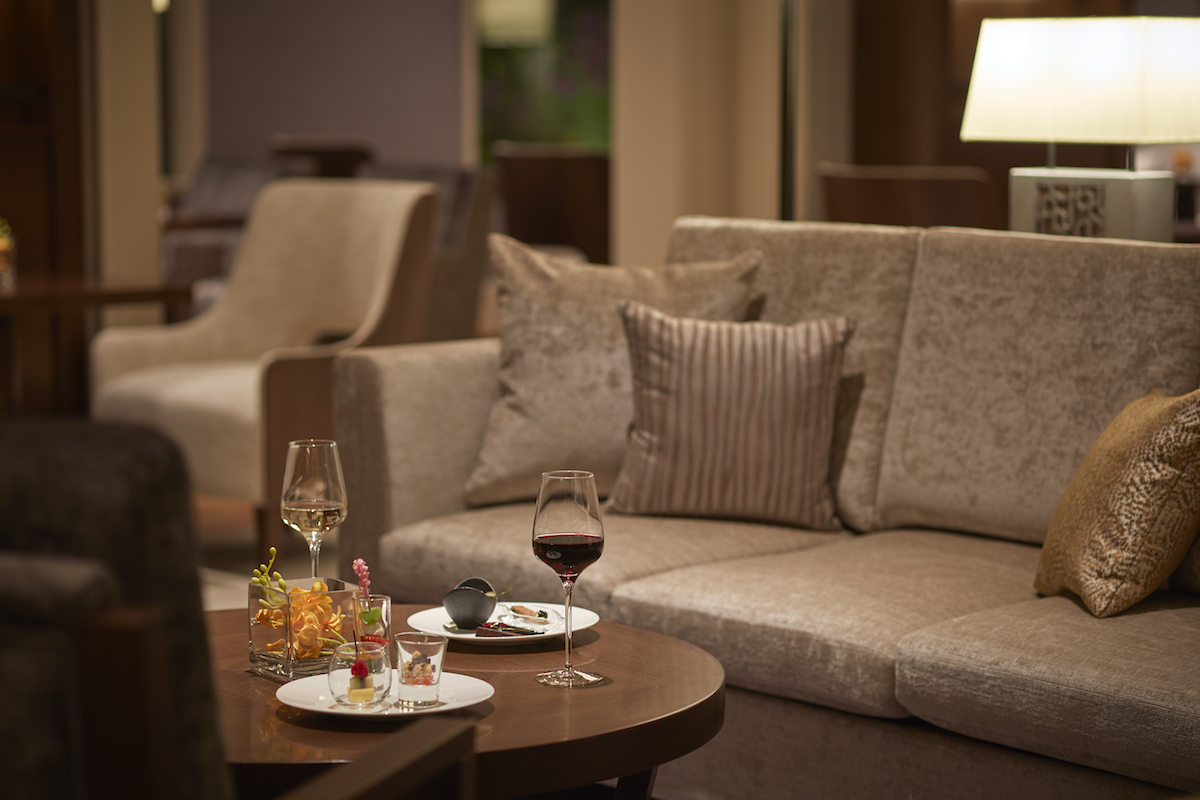 仕事も終わり、お待ちかねのナイトタイム。再び2階の「エグゼクティブラウンジ」へ行き、ワインとおつまみをいただきます。